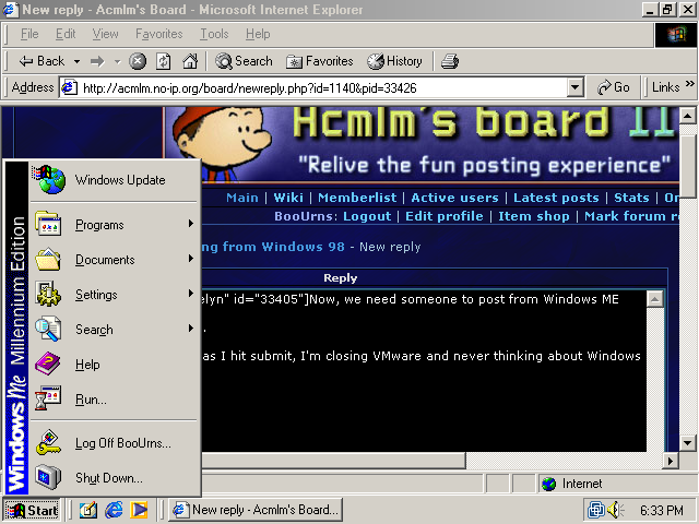 That shot's fake. Windows ME staying up long enough to connect to a web site? Hah! |